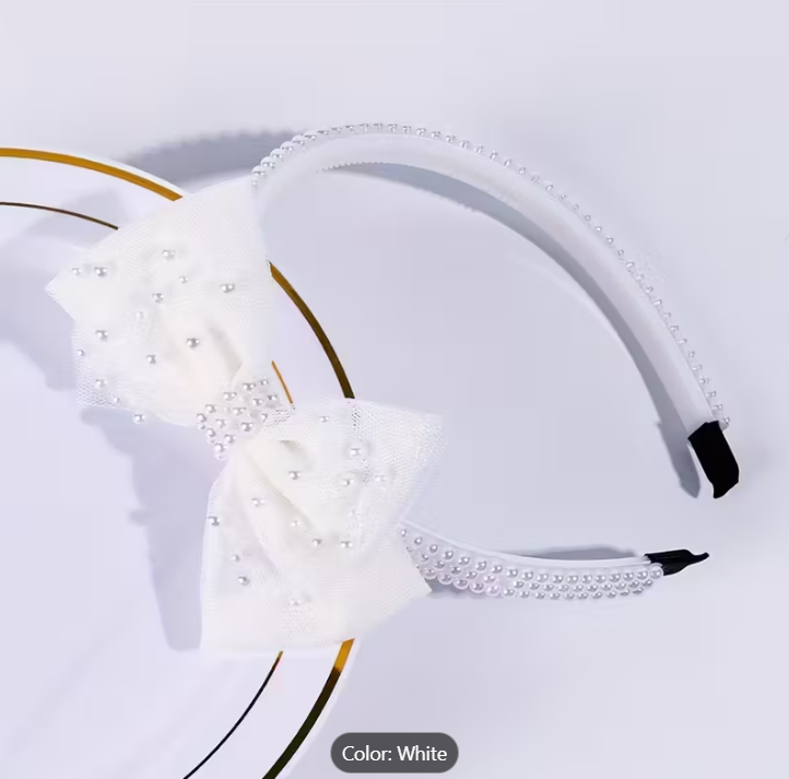• Pearl Headband with tulle bow with scattered pearls