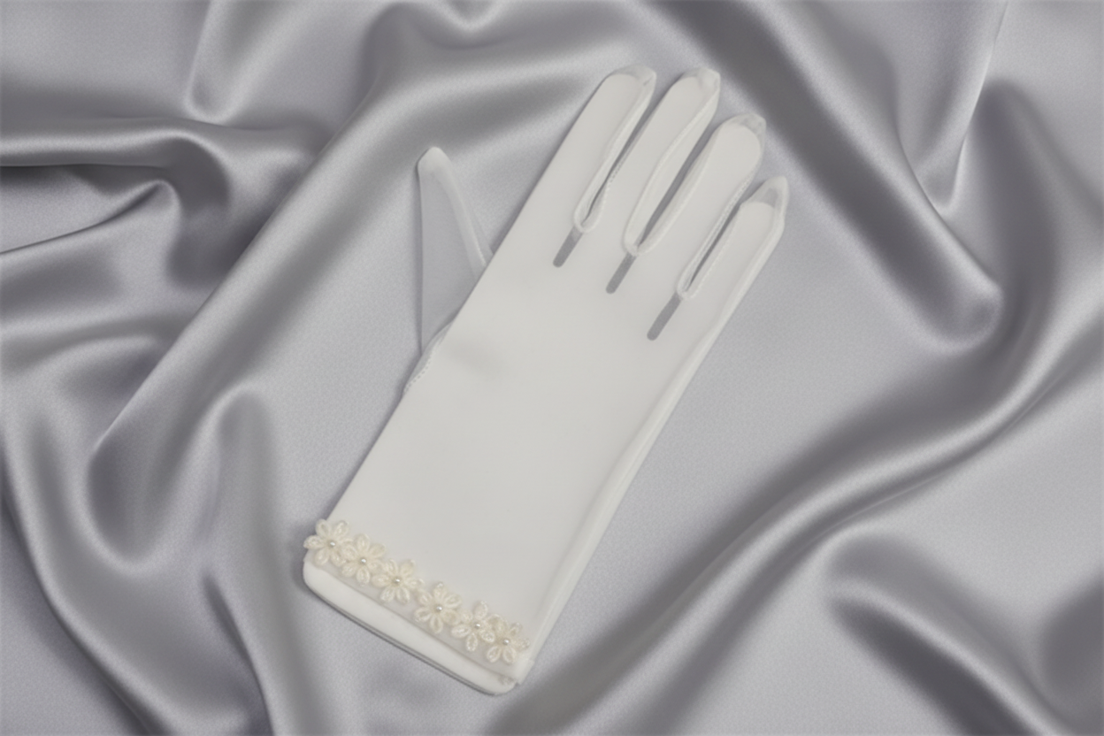 Sheer Gloves with Flower Design Wrist Length: IVORY *