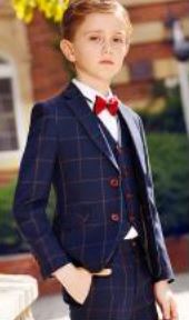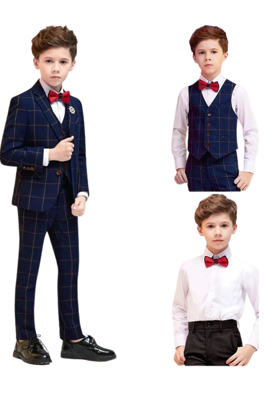 5pc Boys Suit  Navy with orange check (ZS0073)